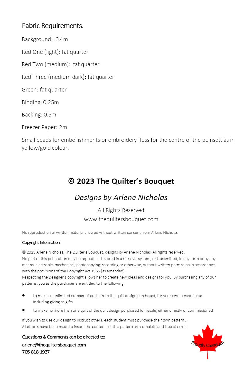 DESCRIPTION: Students will learn how to trace master templates on their background fabric. Using freezer paper and starch to create perfect templates for hand stitching. You will learn how to make perfect bias stems, perfect circles used as berries along with leaves and flowers.